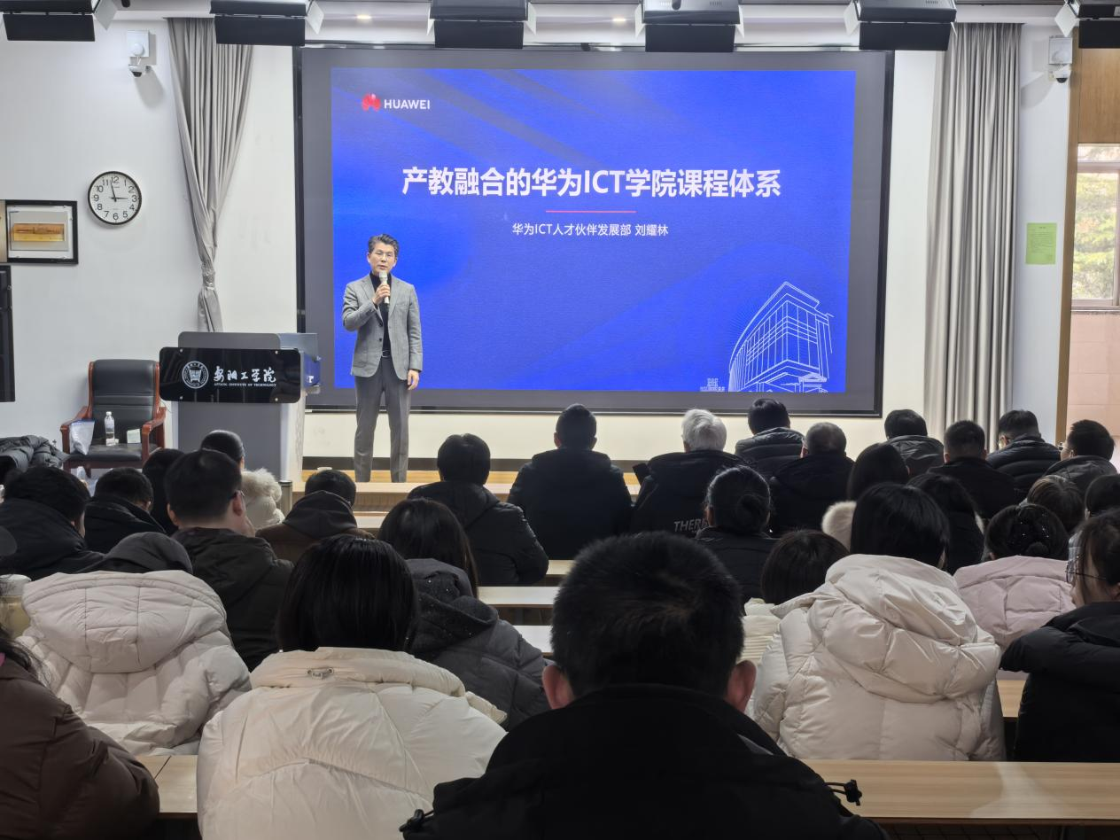 刘耀林总监结合华为在ICT领域的深厚积累与校企合作实践,深入剖析了当前产业发展对人才能力结构的新要求。报告重点介绍了如何基于IT产业真实岗位需求和技术发展趋势,反向设计课程体系,将行业标准、技术认证与实践项目有机融入教学全过程,分享了华为与高校共建产业学院、开发教学资源、打造实践平台的典型案例,为我院优化专业课程设置、创新教学模式提供了宝贵经验和前瞻性思路。